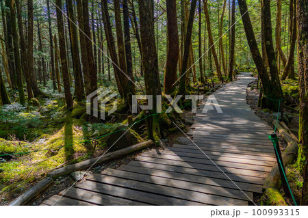 【初夏素材】白駒の池にある木道【長野県】