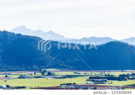 View of lush green Fraser Valley and the mountains in the background - Fraser Valley, BC, Canada