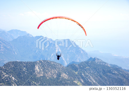 Paraglider soaring over breathtaking mountains in Turkey's stunning landscape