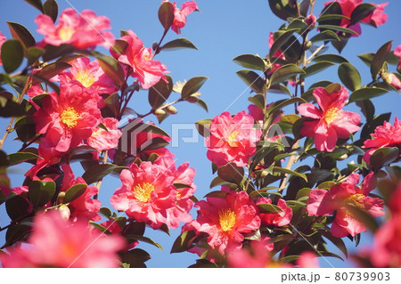 鮮やか サザンカの花
