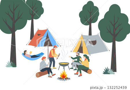 アウトドアを楽しむ男女5人セット