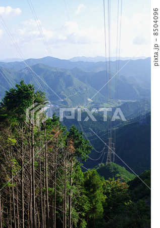 山を越える送電線