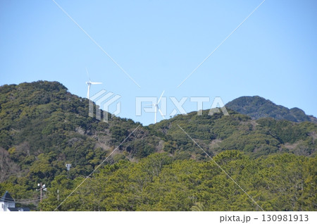 風力発電の風車(弓ヶ浜海岸/静岡県賀茂郡南伊豆町大字湊)