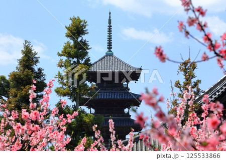 備中国分寺の春 桃と桜と五重塔2 岡山県総社市