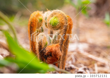 山野草・ヤマドリゼンマイの愉快な新芽・縦位置