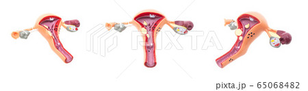 Mock female reproductive system on a white background, isolate. Fallopian tubes and ovaries, close-up