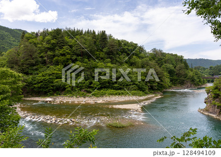 白川郷を流れる庄川の清流と緑に囲まれた美しい自然風景