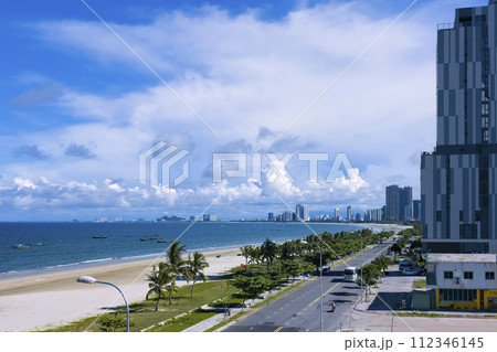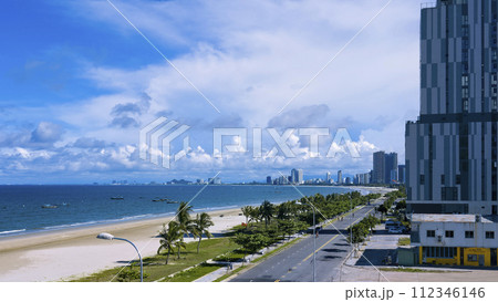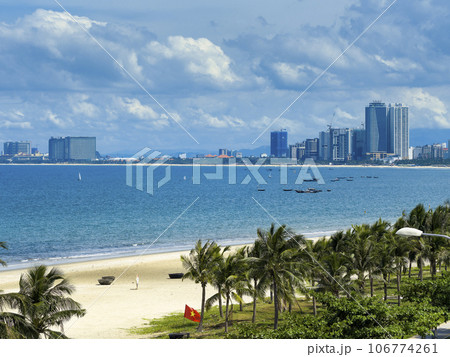ベトナム・ダナン 青い海の広がるミーケービーチと高層ビル群 / My Khe Beach