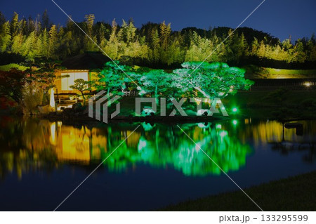 ライトアップされた岡山後楽園の中の島