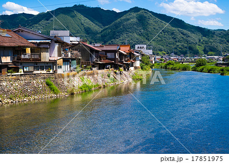 新見御殿町 高梁川沿いの街並み 岡山県新見市