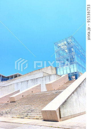 五月晴れの青空に映える岡崎市美術博物館のアトリウム[岡崎市中央総合公園/愛知県岡崎市]