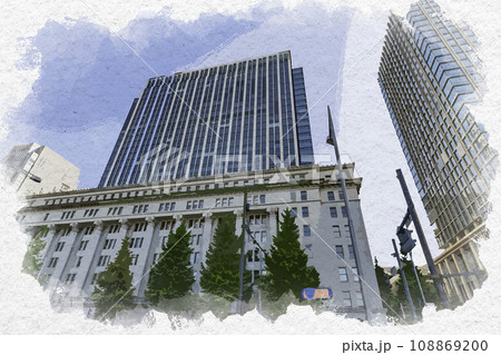 水彩画風 東京丸の内 明治生命館 東京都千代田区