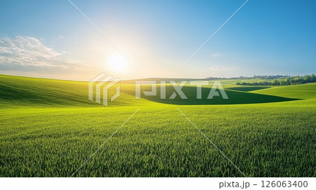 Green wavy hills with agricultural fields