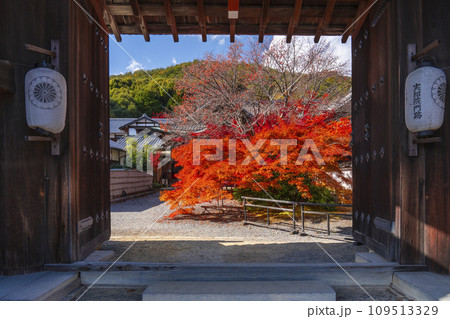 秋の京都 実相院門跡 紅葉に包まれた四脚門