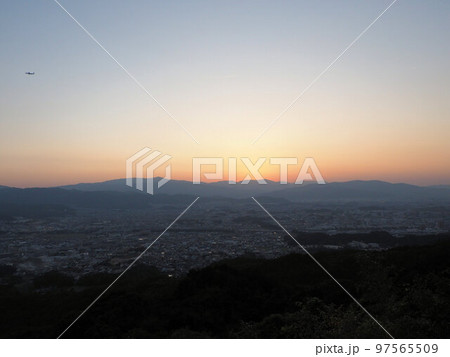 岩屋城址からみた夕焼けと飛行機 福岡県太宰府市観世音寺