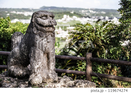 富盛の石彫大獅子(沖縄戦を物語る銃弾の痕跡)