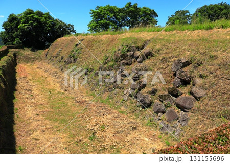 石垣と堀が残る青空の九戸城跡 《岩手》