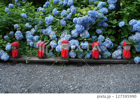 アジサイとお地蔵様(2023年7月岩手県二戸市浄法寺)