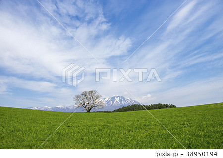 岩手県岩手郡雫石町丸谷地 小岩井農場の一本桜エドヒガンと残雪の岩手山