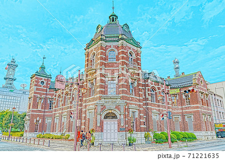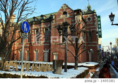 写真 レトロの岩手銀行元本店赤レンガ館の美しい光り