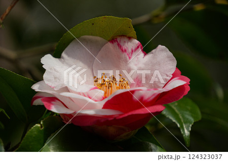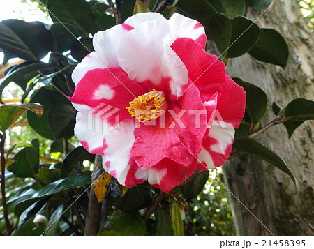岩根絞り(いわねしぼり)大輪で紅白のツバキ、椿