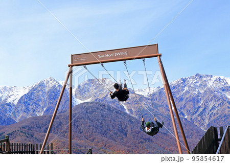 ハクバ マウンテンハーバー、テラスから写真を撮る