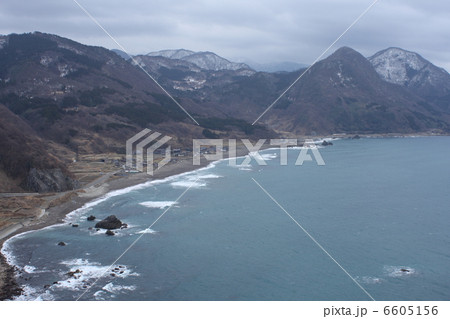 新潟 佐渡 外海府海岸 跳坂から望む岩谷口集落