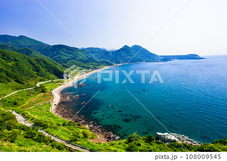 新潟 佐渡 外海府海岸 跳坂から望む岩谷口集落