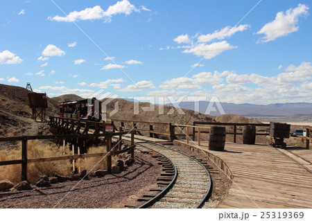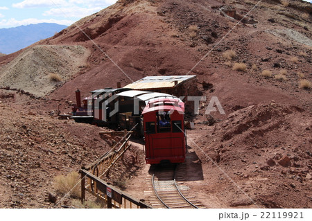 鉱山跡を走る蒸気機関車 アメリカ カリフォルニア