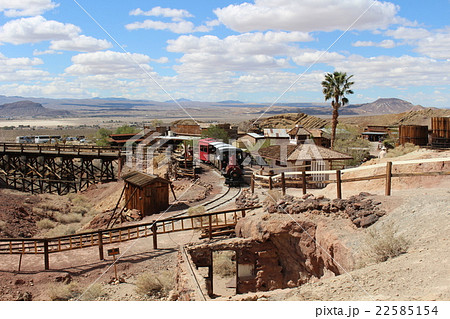 廃坑跡のゴーストタウンを走る蒸気機関車 アメリカ