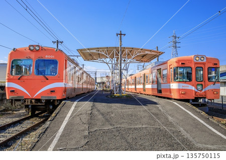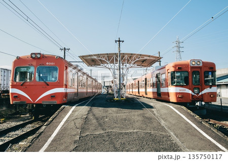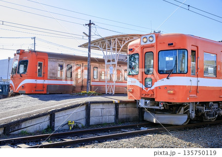 岳南電車 青空とに編成が停車している岳南江尾駅の風景