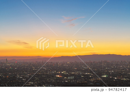 【大阪平野を一望 (夕景)】 撮影場所:大阪府八尾市大字神立