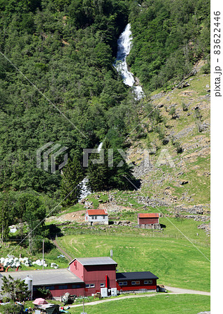 ノルウェーフィヨルド沿岸の峡谷の集落