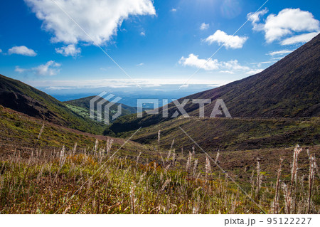 秋の栃木県 那須岳(茶臼岳)の北側の麓から朝日岳、剣が峰方面を見る