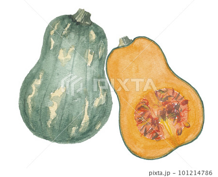 水彩で描いた島かぼちゃ チンクワー カット 断面