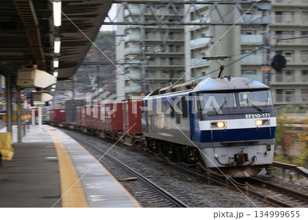 東海道本線 島本駅を通過するEF210牽引の貨物列車