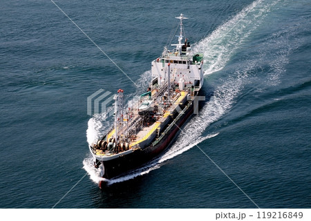 来島海峡大橋の上から見た小型ケミカルタンカー