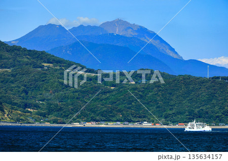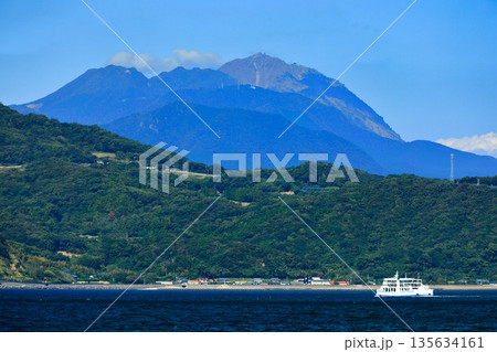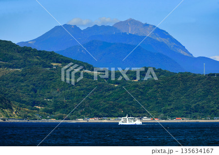 【熊本県】晴天の雲仙普賢岳と島鉄フェリー