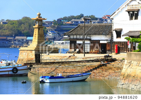 広島県福山市鞆の浦 鞆の浦のシンボル常夜灯と周辺の街並み