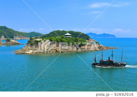 【広島県】快晴の平成いろは丸と弁天島(鞆の浦)