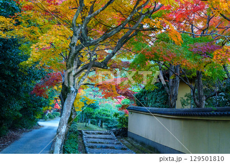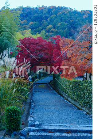 嵯峨野 茅葺屋根と紅葉 京都市右京区嵯峨