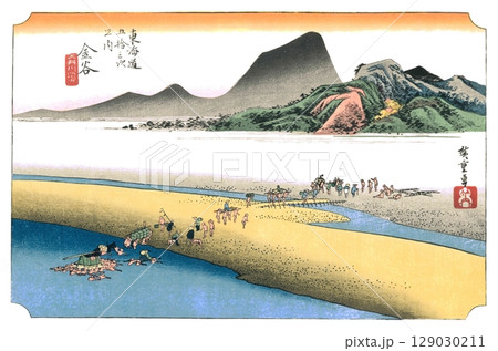歌川広重 東海道五十三次(保永堂版)#25 金谷 大井川遠岸