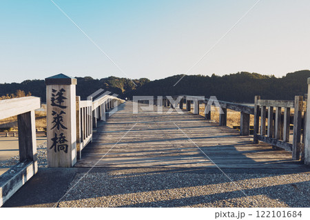 静岡県島田市の大井川に架かる木造の長い橋「蓬莱橋」