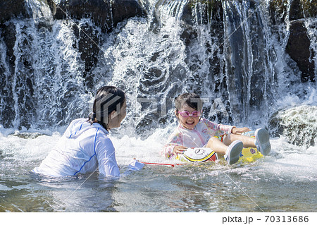 川で遊ぶ少女 夏 清流 少女