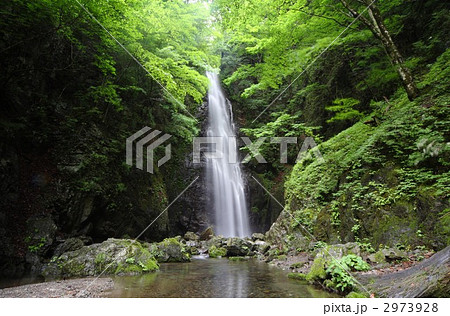 新緑の奥多摩の川苔山・川乗山の百尋の滝の風景(東京都西多摩郡奥多摩町)