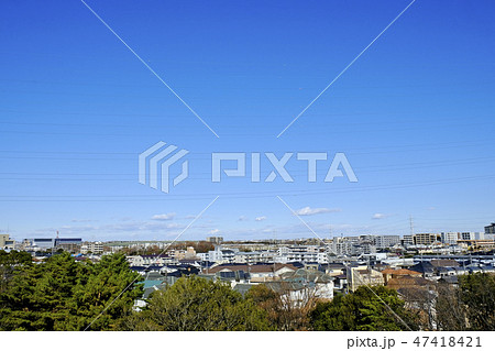 日本の横浜都市景観 横浜市営地下鉄グリーンライン 川和町駅などを望む