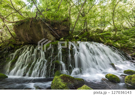 初夏の元滝伏流水と元滝川の流れ 秋田県にかほ市