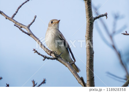 新緑の中、さえずる可愛いコサメビタキ(ヒタキ科)東京都大田区東京港野鳥公園-2023年