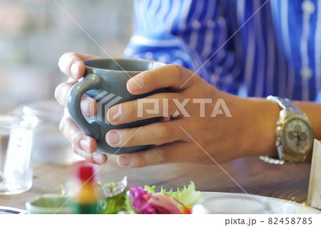 マグカップで飲み物を飲む男性