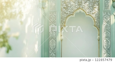 Ornate arch with soft pastel green background for design and decor